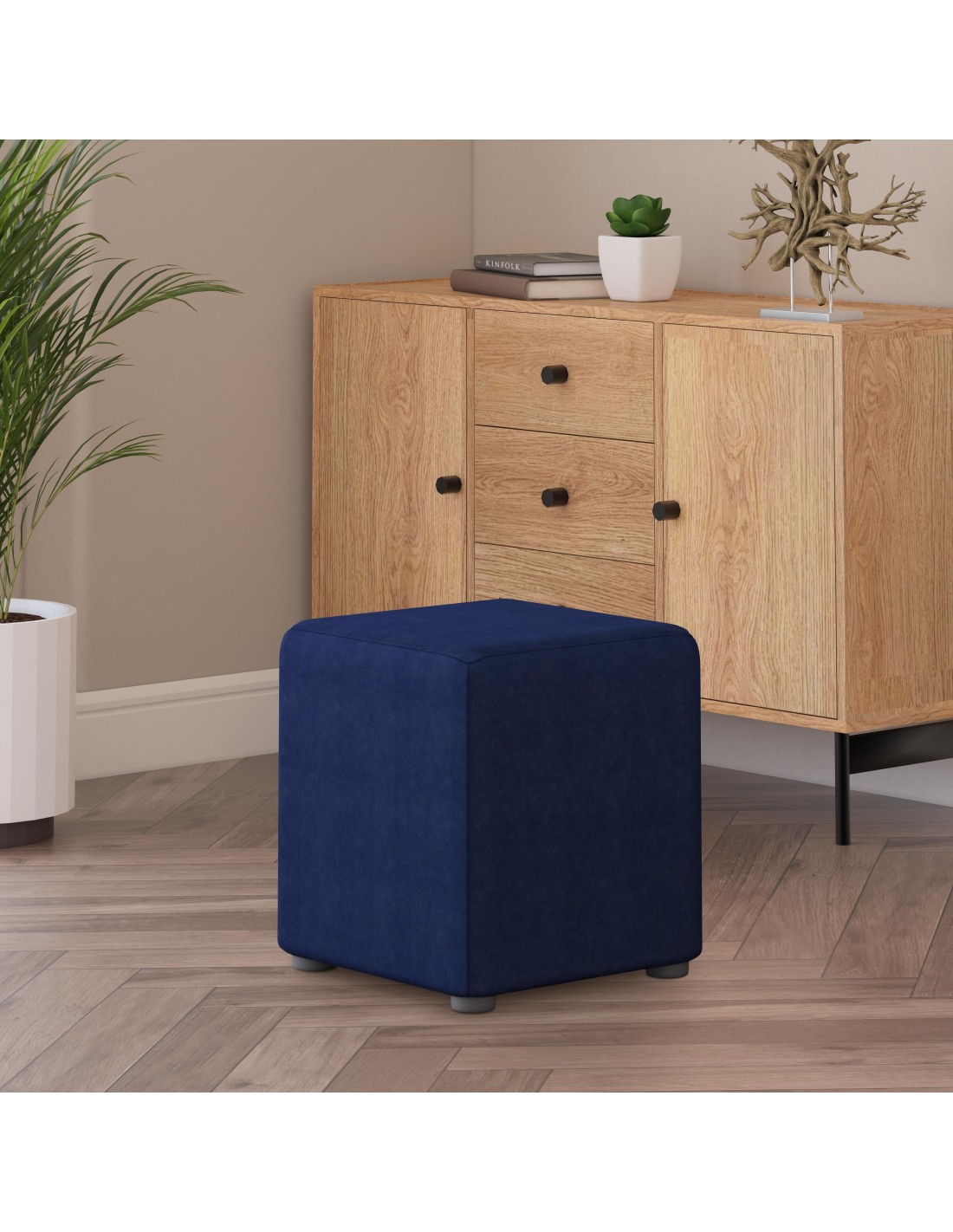 Fabric Material Cube Seating Plush Velvet - Indigo Dark Blue