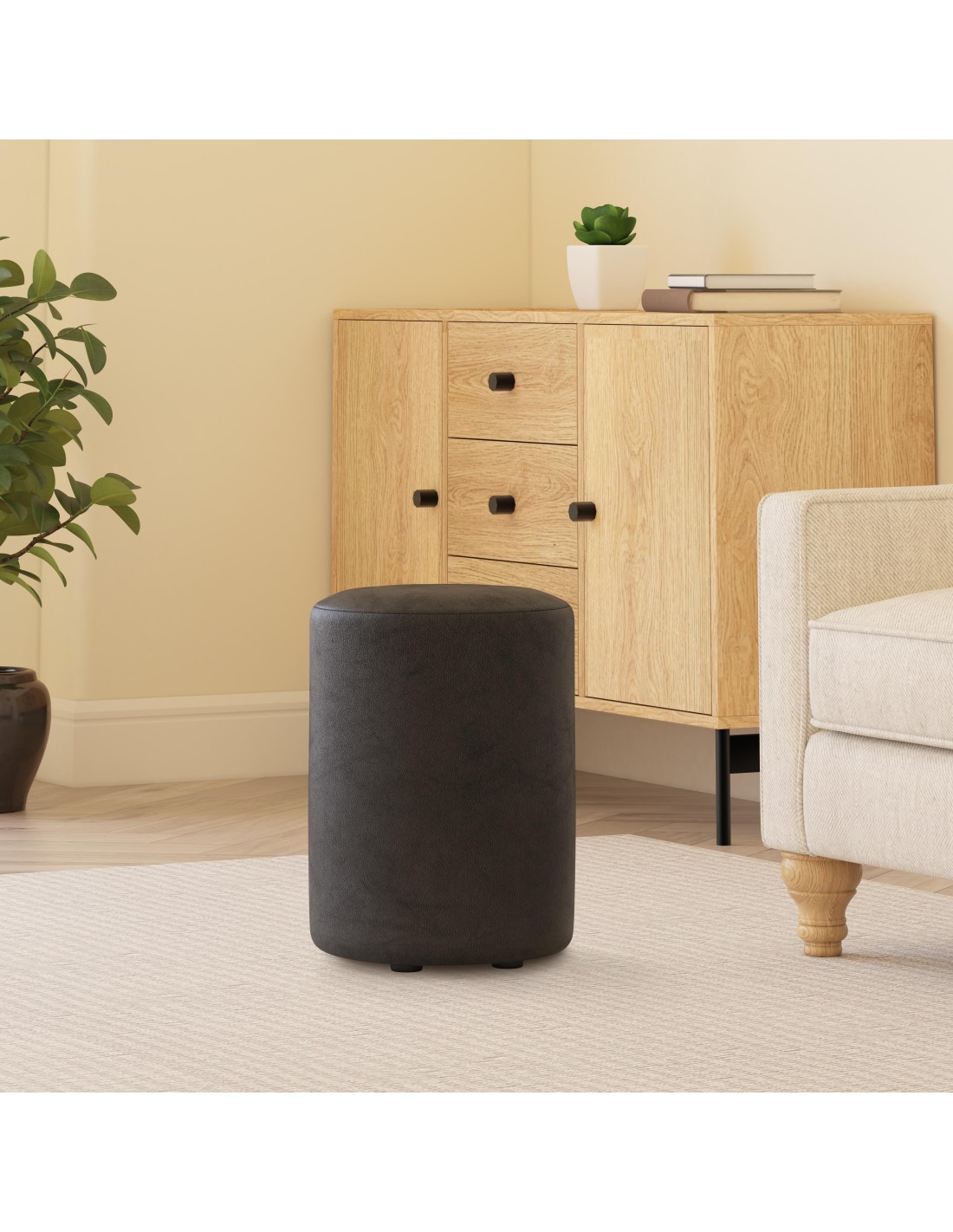 Italian Leather Round Stools Style Leather - Nut Brown Brown